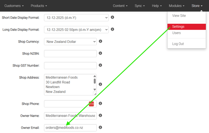 Example: If the email is orders@medifoods.co.nz, the domain is medifoods.co.nz.
