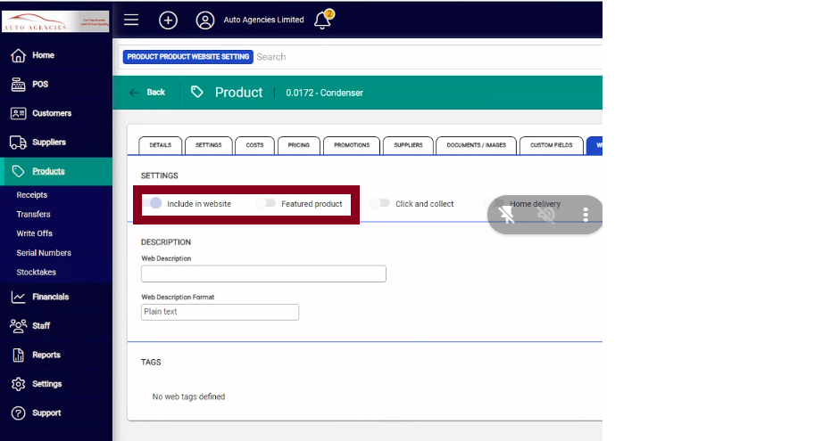 To flag the customer as a customer who will shop on the site, tick the 'Include in website' check box. This effectively nominates this customer to be imported to the admin area of the site.