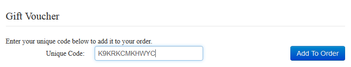 When a gift voucher is purchased, anyone can use the gift voucher providing they have the unique gift voucher code. They can enter this when on the payment page allowing them to receive a discount on the total of the sales order.