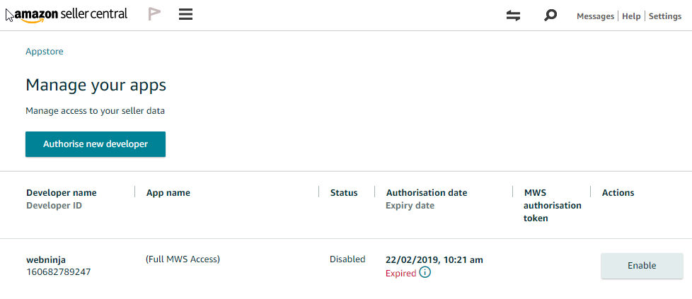Amazon MWS - Adding Developer Access for Web Ninja